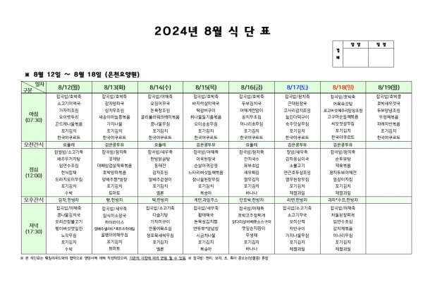 8월 셋째주 식단표 > 요양원 게시판