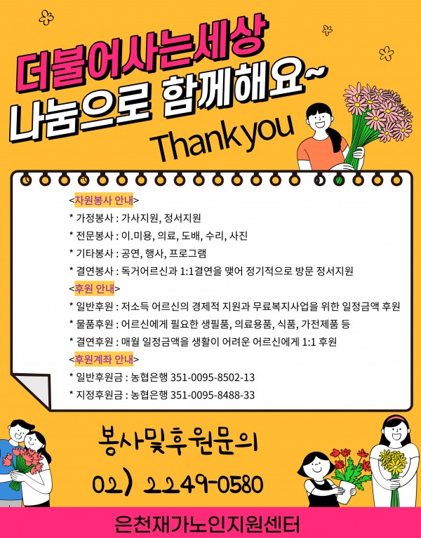 자원봉사자 모집 페이지 정보 작성자 은천노인복지회 작성일21-04-29 14:58 조회82,872회 댓글0건 관련링크 이전글 다음글 목록 답변 본문 은천재가노인지원센터 자원봉사자 모집! 이전글 다음글 목록 답변