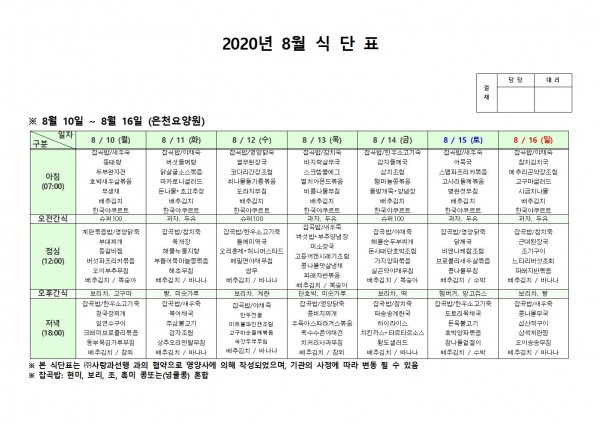 8월 둘째주 식단표 페이지 정보 작성자 은천노인복지회 작성일20-08-25 16:00 조회164,506회 댓글0건 관련링크 이전글 다음글 목록 답변 본문 , 이전글 다음글 목록 답변