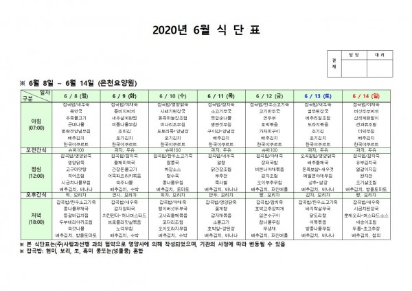 6월 둘째주 식단표 페이지 정보 작성자 은천노인복지회 작성일20-06-15 12:49 조회170,556회 댓글0건 관련링크 이전글 다음글 목록 답변 본문 ㅣ; 이전글 다음글 목록 답변