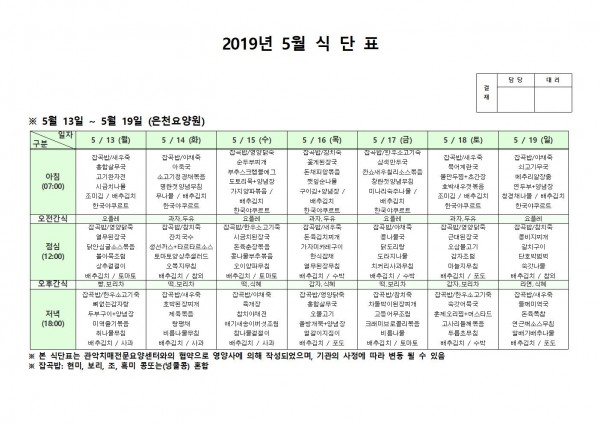 5월 둘째주 식단표 페이지 정보 작성자 은천노인복지회 작성일19-05-20 11:59 조회204,154회 댓글0건 관련링크 이전글 다음글 목록 답변 본문 5월 둘째주 식단표 이전글 다음글 목록 답변
