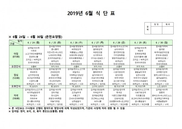 6월 넷째주 식단표 페이지 정보 작성자 은천노인복지회 작성일19-07-02 11:48 조회200,958회 댓글0건 관련링크 이전글 다음글 목록 답변 본문 6월 넷째주 식단표 이전글 다음글 목록 답변