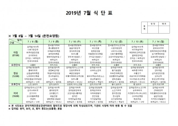 7월 둘째주 식단표 페이지 정보 작성자 은천노인복지회 작성일19-07-15 10:56 조회199,059회 댓글0건 관련링크 이전글 다음글 목록 답변 본문 7월 둘째주 식단표 이전글 다음글 목록 답변