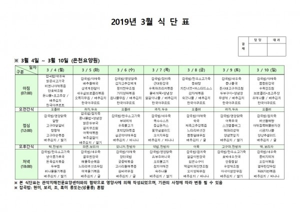 3월 첫째주 식단표 페이지 정보 작성자 은천노인복지회 작성일19-03-13 09:44 조회206,835회 댓글0건 관련링크 이전글 다음글 목록 답변 본문 3월 첫째주 식단표 이전글 다음글 목록 답변