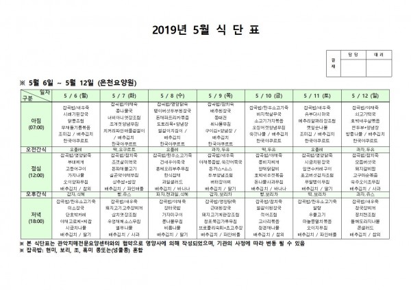 5월 첫째주 식단표 페이지 정보 작성자 은천노인복지회 작성일19-05-13 13:11 조회204,163회 댓글0건 관련링크 이전글 다음글 목록 답변 본문 5월 첫째주 식단표 이전글 다음글 목록 답변