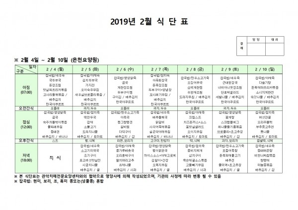 2월 첫째주 식단표 페이지 정보 작성자 은천노인복지회 작성일19-02-13 17:29 조회207,584회 댓글0건 관련링크 이전글 다음글 목록 답변 본문 2월 첫째주 식단표 이전글 다음글 목록 답변