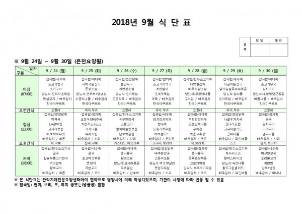 9월 넷째주 식단표 페이지 정보 작성자 은천노인복지회 작성일18-10-08 11:06 조회206,743회 댓글0건 관련링크 이전글 다음글 목록 답변 본문 9월 넷째주 식단표 이전글 다음글 목록 답변