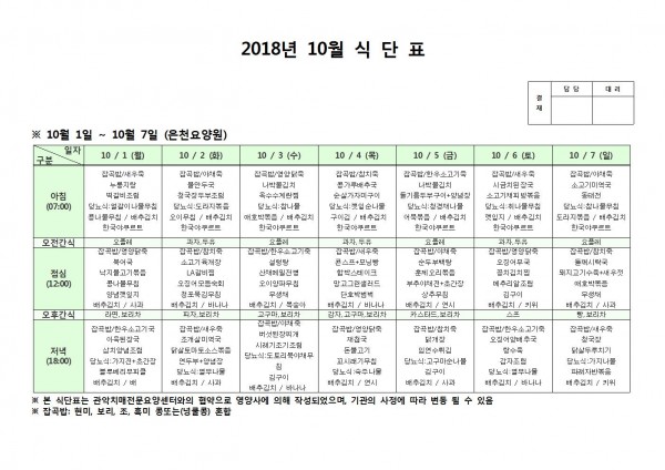 10월 첫째주 식단표 페이지 정보 작성자 은천노인복지회 작성일18-10-08 11:06 조회205,888회 댓글0건 관련링크 이전글 다음글 목록 답변 본문 10월 첫째주 식단표 이전글 다음글 목록 답변