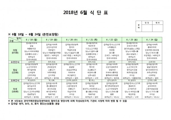 6월 넷째주 식단표 페이지 정보 작성자 은천노인복지회 작성일18-06-25 11:11 조회210,943회 댓글0건 관련링크 이전글 다음글 목록 답변 본문 6월 넷째주 식단표 이전글 다음글 목록 답변