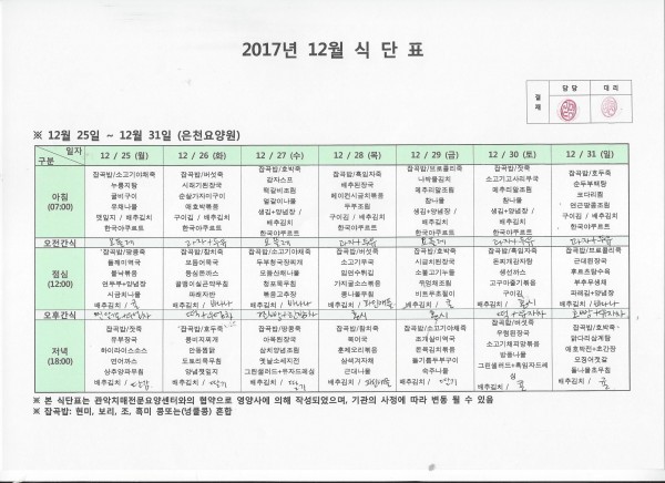 12월 다섯째주 식단표 페이지 정보 작성자 은천노인복지회 작성일17-12-26 11:49 조회193,167회 댓글0건 관련링크 이전글 다음글 목록 답변 본문 12월 다섯째주 식단표 이전글 다음글 목록 답변