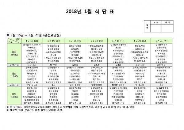 1월 셋째주 식단표 페이지 정보 작성자 은천노인복지회 작성일18-01-17 15:16 조회195,030회 댓글0건 관련링크 이전글 다음글 목록 답변 본문 1월 셋째주 식단표 이전글 다음글 목록 답변