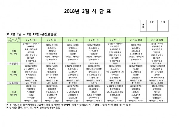 2월 첫째주 식단표 페이지 정보 작성자 은천노인복지회 작성일18-02-05 17:07 조회197,180회 댓글0건 관련링크 이전글 다음글 목록 답변 본문 2월 첫째주 식단표 이전글 다음글 목록 답변