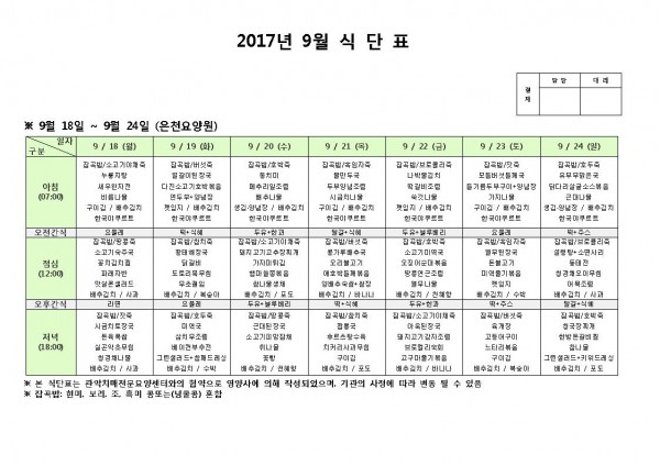 9월 셋째주 식단표 페이지 정보 작성자 은천노인복지회 작성일17-09-18 11:02 조회185,352회 댓글0건 관련링크 이전글 다음글 목록 답변 본문 9월 셋째주 식단표 이전글 다음글 목록 답변