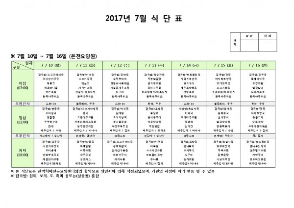 7월 둘째주 식단표 페이지 정보 작성자 은천노인복지회 작성일17-07-11 09:20 조회181,201회 댓글0건 관련링크 이전글 다음글 목록 답변 본문 7월 둘째주 식단표 이전글 다음글 목록 답변