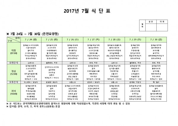 7월 넷째주 식단표 페이지 정보 작성자 은천노인복지회 작성일17-07-24 17:56 조회182,135회 댓글0건 관련링크 이전글 다음글 목록 답변 본문 7월 넷째주 식단표 이전글 다음글 목록 답변