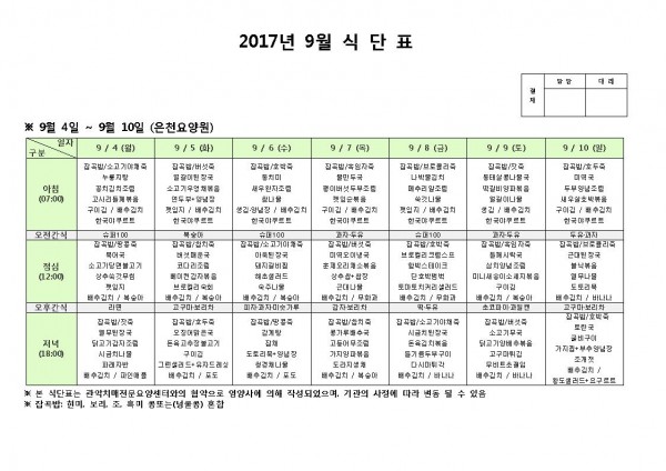 9월 첫째주 식단표 페이지 정보 작성자 은천노인복지회 작성일17-09-04 15:14 조회183,868회 댓글0건 관련링크 이전글 다음글 목록 답변 본문 9월 첫째주 식단표 이전글 다음글 목록 답변