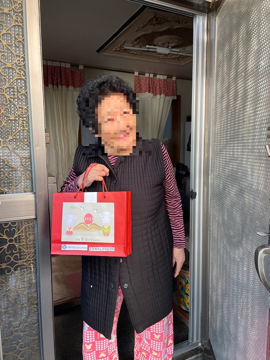 [재가노인지원센터] 설명절 선물지원서비스 페이지 정보 작성자 은천노인복지회 작성일21-02-26 09:42 조회25,347회 댓글0건 관련링크 이전글 다음글 목록 답변 본문 2021년 설 멸정을 맞이하여 어르신들을 찾아뵙고 선물을 전하면서 안부확인을 진행하였습니다. 이전글 다음글 목록 답변