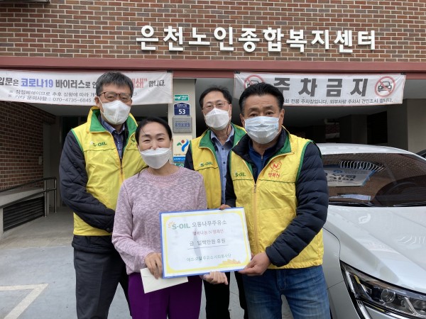 S-OIL 오동나무주유소 후원금 전달식 페이지 정보 작성자 은천노인복지회 작성일20-10-29 13:23 조회26,468회 댓글0건 관련링크 이전글 다음글 목록 답변 본문 동대문구 장안동 인근에 있는 S-OIL 오동나무주유소에서 후원금을 전달해 주셨습니다. 이전글 다음글 목록 답변