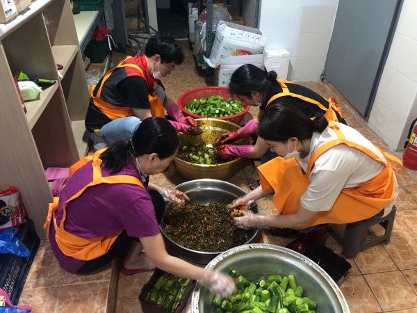 어르신들의 건강한 식생활과 면역력 증진을 위해 전 직원이 동참하여 김장을 하였습니다. 완성된 김치(오이김치)는 조리 능력이 없는 남자어르신 20명에게 지원하였습니다.