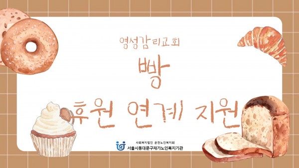 [재가노인지원서비스] 2026년 3월 영성감리교회(빵) 후원 페이지 정보 작성자 은천노인복지회 작성일26-04-06 11:18 조회9회 댓글0건 관련링크 이전글 다음글 목록 답변 본문 기관 인근에 위치한 '영성감리교회'에서 빵(단팥, 소보로, 완두앙금) 200개를 후원해주셨습니다. 이전글 다음글 목록 답변