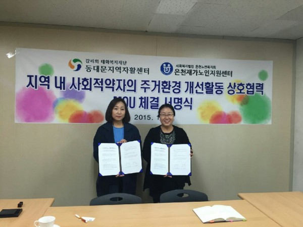 동대문지역자활센터와 협약 페이지 정보 작성자 은천노인복지회 작성일17-01-11 15:47 조회36,468회 댓글0건 관련링크 이전글 다음글 목록 답변 본문 동대문지역 자활센터와 협약을 체결하여어르신들 도배장판 교체에 도움을 주시기로 하였다. 이전글 다음글 목록 답변