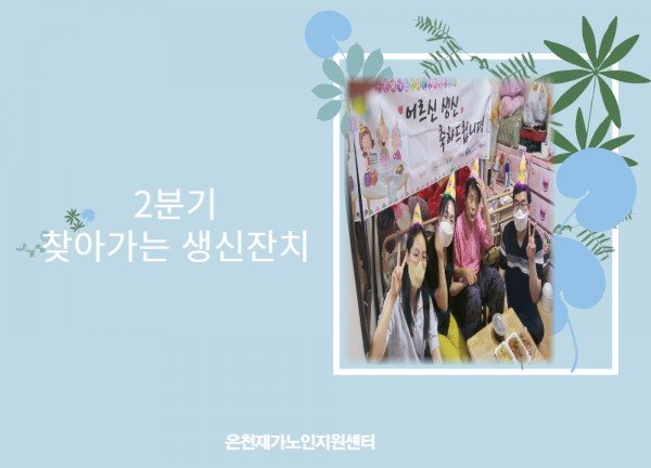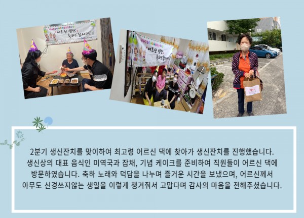 [재가노인지원서비스] 2분기 찾아가는 생신잔치 페이지 정보 작성자 은천노인복지회 작성일22-07-06 13:26 조회18,549회 댓글0건 관련링크 이전글 다음글 목록 답변 본문 2분기 찾아가는 생신잔치 이전글 다음글 목록 답변