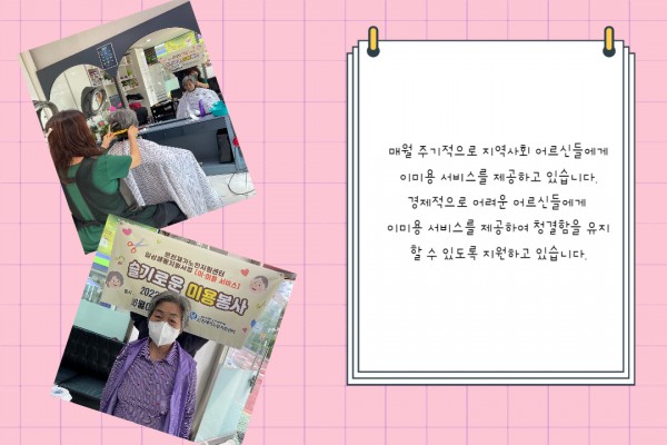 [재가노인지원서비스] 이미용 서비스 페이지 정보 작성자 은천노인복지회 작성일22-07-06 13:27 조회18,346회 댓글0건 관련링크 이전글 다음글 목록 답변 본문 6월 이미용 서비스 이전글 다음글 목록 답변