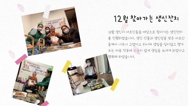 [재가노인지원서비스 ] 12월 찾아가는 생신잔치 페이지 정보 작성자 은천노인복지회 작성일21-12-31 13:32 조회20,599회 댓글0건 관련링크 이전글 다음글 목록 답변 본문 12월 찾아가는 생신잔치 이전글 다음글 목록 답변