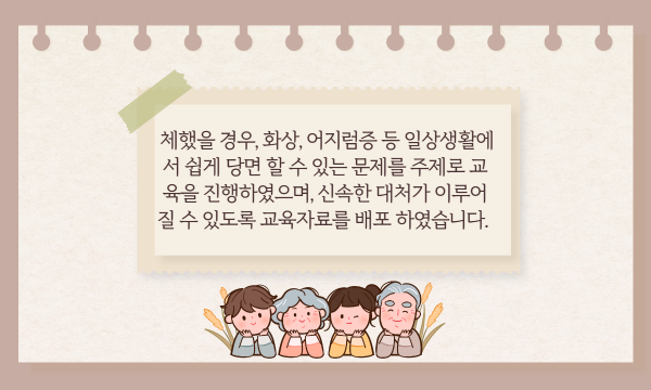 [재가노인서비스] 대상자교육_응급처치교육 페이지 정보 작성자 은천노인복지회 작성일22-03-03 11:43 조회19,748회 댓글0건 관련링크 이전글 다음글 목록 답변 본문 은천재가노인지원센터 대상자 어르신들에게 응급처치교육을 진행하였습니다. 이전글 다음글 목록 답변