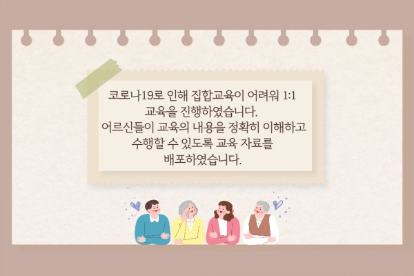 [재가노인지원서비스]대상자교육 페이지 정보 작성자 은천노인복지회 작성일22-03-30 11:27 조회19,137회 댓글0건 관련링크 이전글 다음글 목록 답변 본문 재가 어르신들을 대상으로 대상자교육(대인관계 및 이성교육)을 진행하였습니다. 이전글 다음글 목록 답변