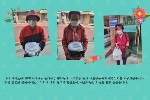 [재가노인지원서비스] 1분기 김장서비스 페이지 정보 작성자 은천노인복지회 작성일22-03-30 14:01 조회19,181회 댓글0건 관련링크 이전글 다음글 목록 답변 본문 1분기 김장서비스 이전글 다음글 목록 답변
