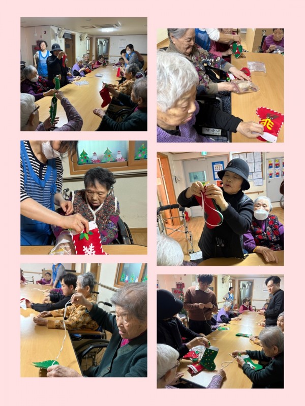 12월 19일 미술치료 프로그램 페이지 정보 작성자 은천노인복지회 작성일24-12-19 14:57 조회5,206회 댓글0건 관련링크 이전글 다음글 목록 답변 본문 바느질하여 산타양말 만들기♥ 이전글 다음글 목록 답변